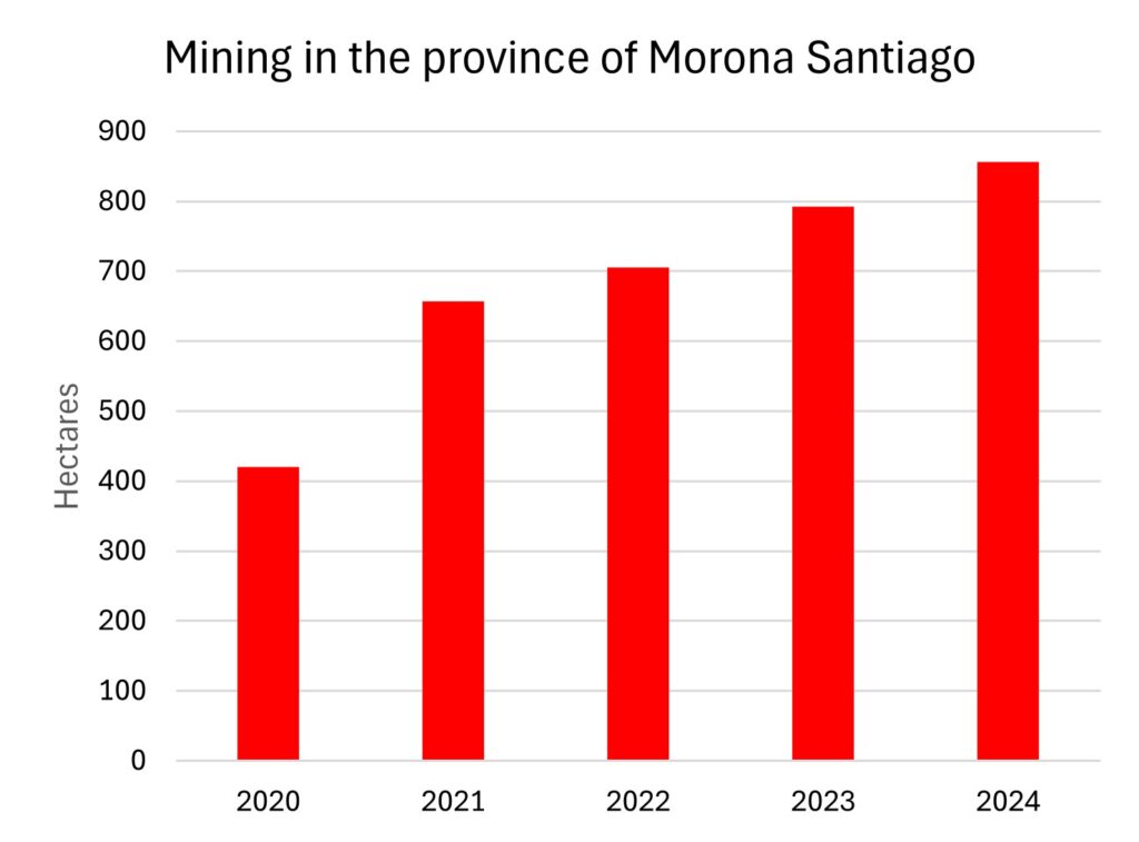 Graph 1 shows the cumulative mining deforestation in the Morona Santiago province between 2020 and 2024.
